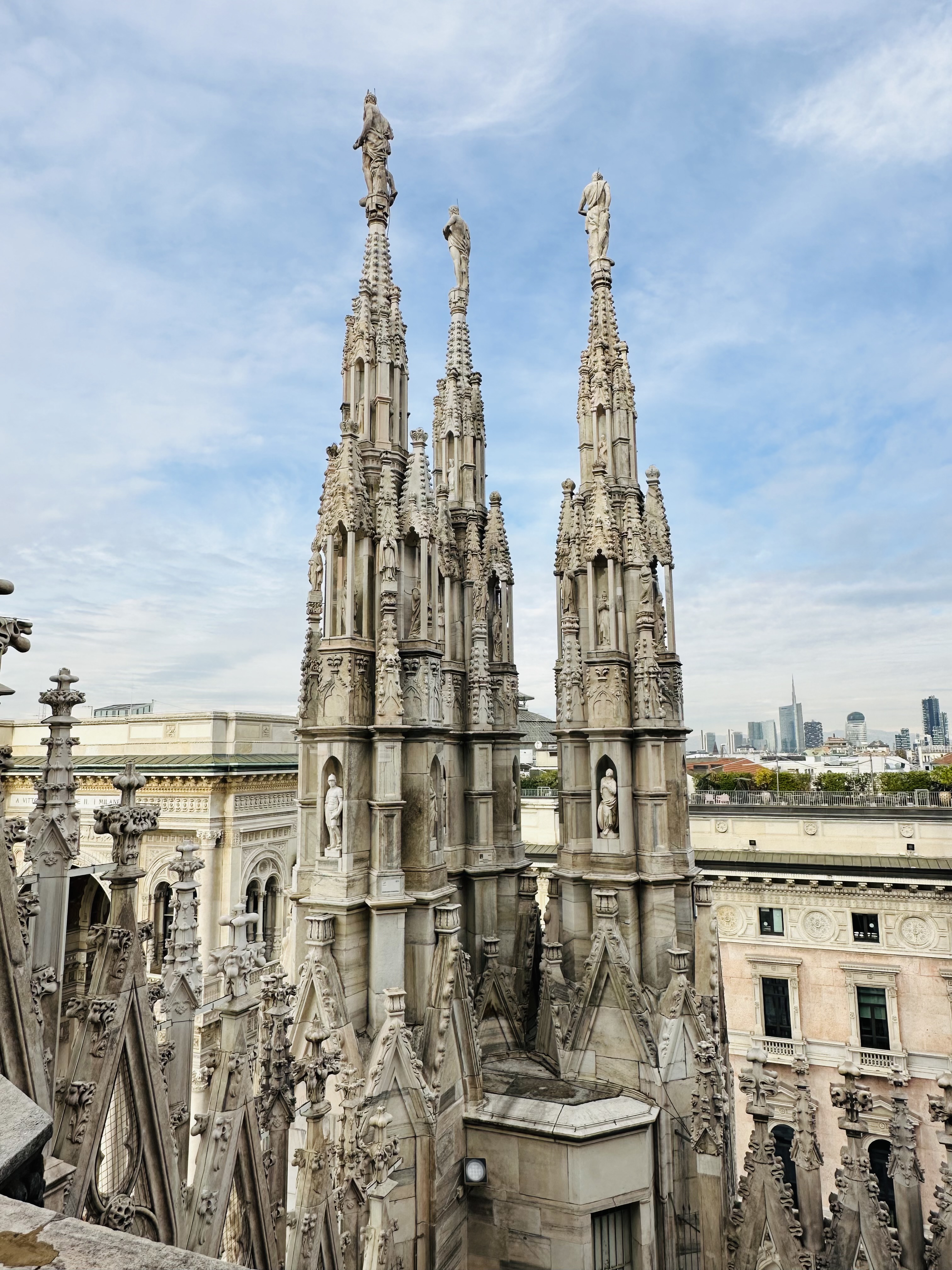 ミラノの象徴。屋上テラスから街を一望。チケットの種類によっては「Museo del Duomo(ドゥオーモ美術館)」と考古学エリアがセット。館内をゆっくり見るなら+約45分が理想。